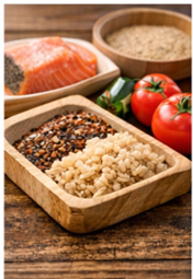 현미, 잡곡, 귀리와 같은 탄수화물과 올리브오일, 들기름 소량을 활용하면 자연스럽게 염분과 당 섭취를 줄일 수 있습니다.
